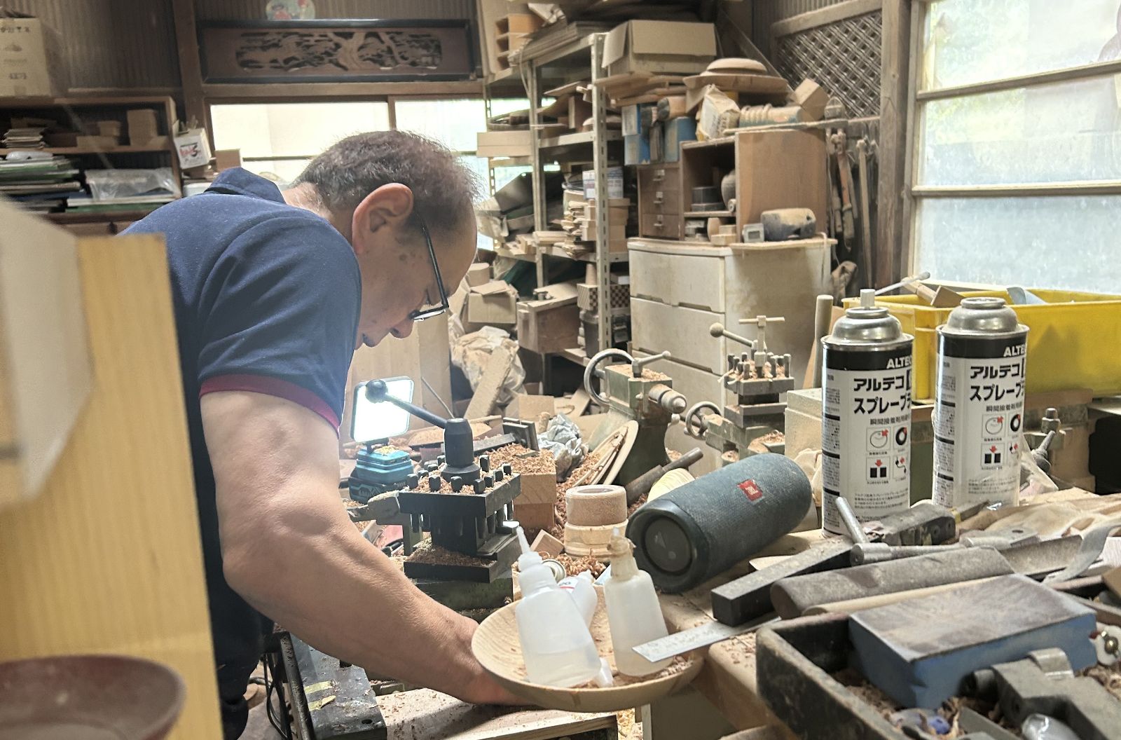 工房には大自然のように大らかで心温かい職人がさまざまな木の作品を作っている。